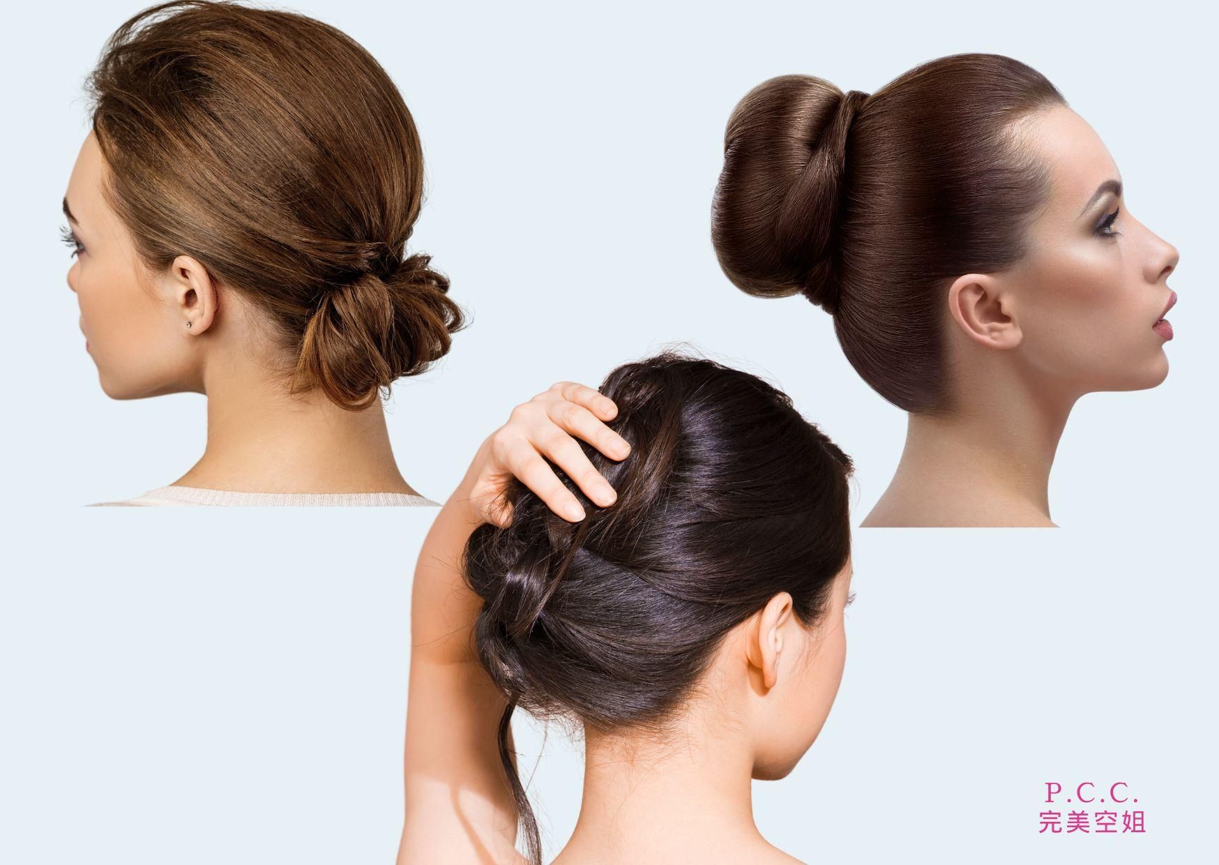 目前航空公司面試的「包頭」型態有: (不包含前額的頭髮處理喔!)